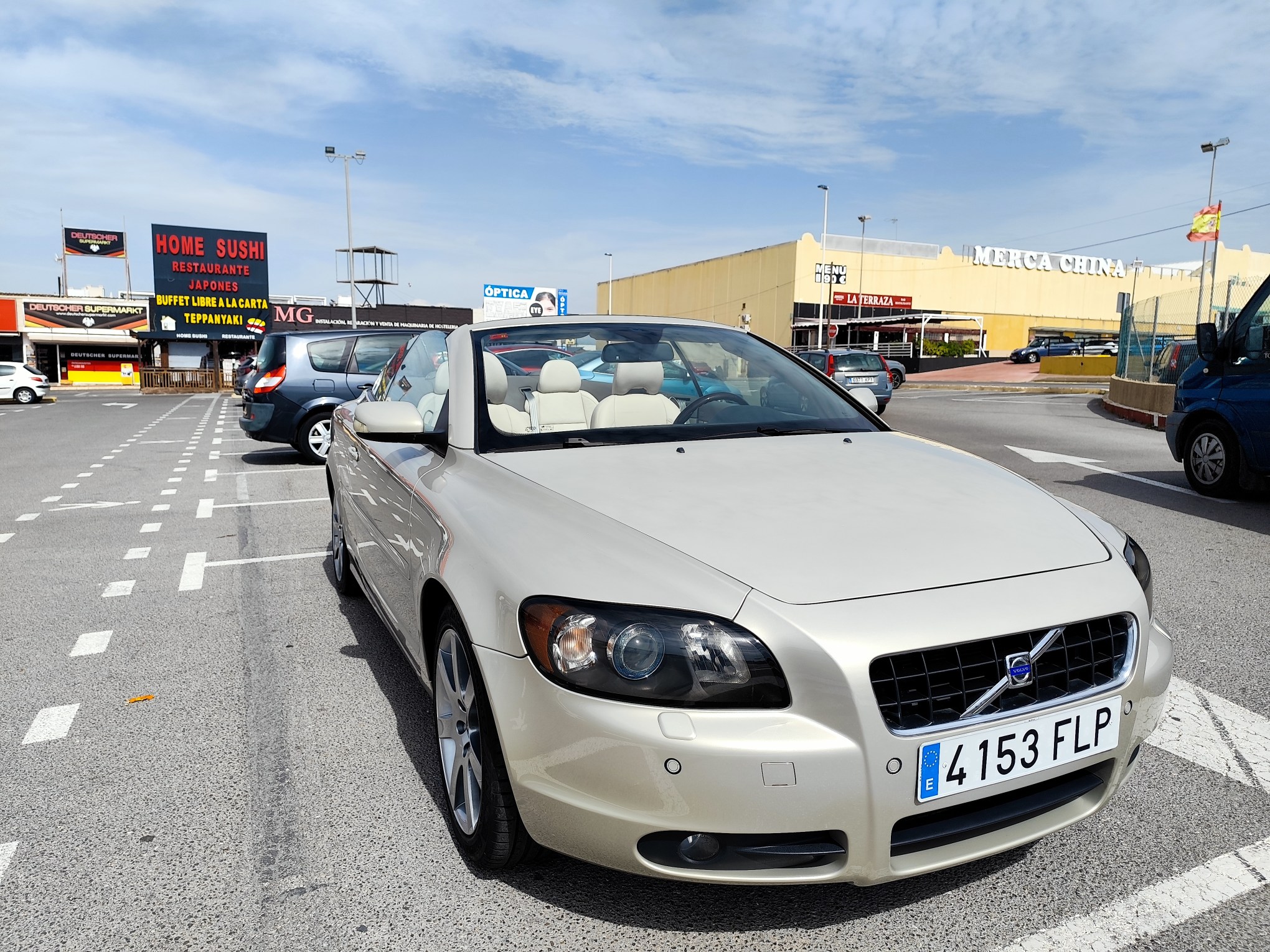 Carrocería elegante en color champagne, líneas fluidas y un exclusivo interior en cuero beige de alta calidad que transmite lujo desde el primer momento. Su techo rígido retráctil eléctrico convierte este coche en coupé o cabrio en segundos… ¡dos coches en uno! 🌞